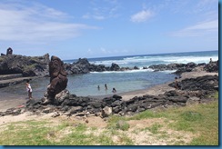 Our next stop was at Hanga Roa, where there are 3 restored platforms and the only Moai with their eyes inserted. The more spiritual the person was, the larger the statue. The platforms are burial sites, so you must respect this. There was one American 2 years ago that climbed on a statue and took a piece of the ear. He was quarantined in his hotel room for 3 weeks and fined him $17,000 US Dollars. They could have sent him to prison. The Moai are very sacred.